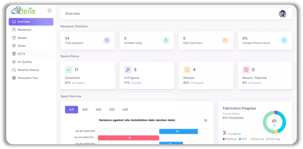 A systematic monitoring and recording of employees' presence or absence during scheduled work hours with IDERIA manpower tracking. Automated systems reducing errors and providing real-time data on employee attendance, making it an essential component of efficient HR practices.